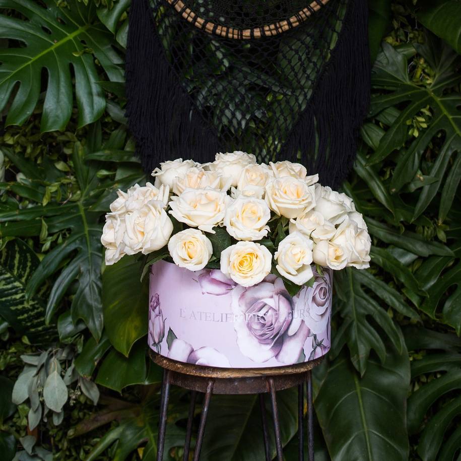 Caja redonda edición limitada con rosa blanca